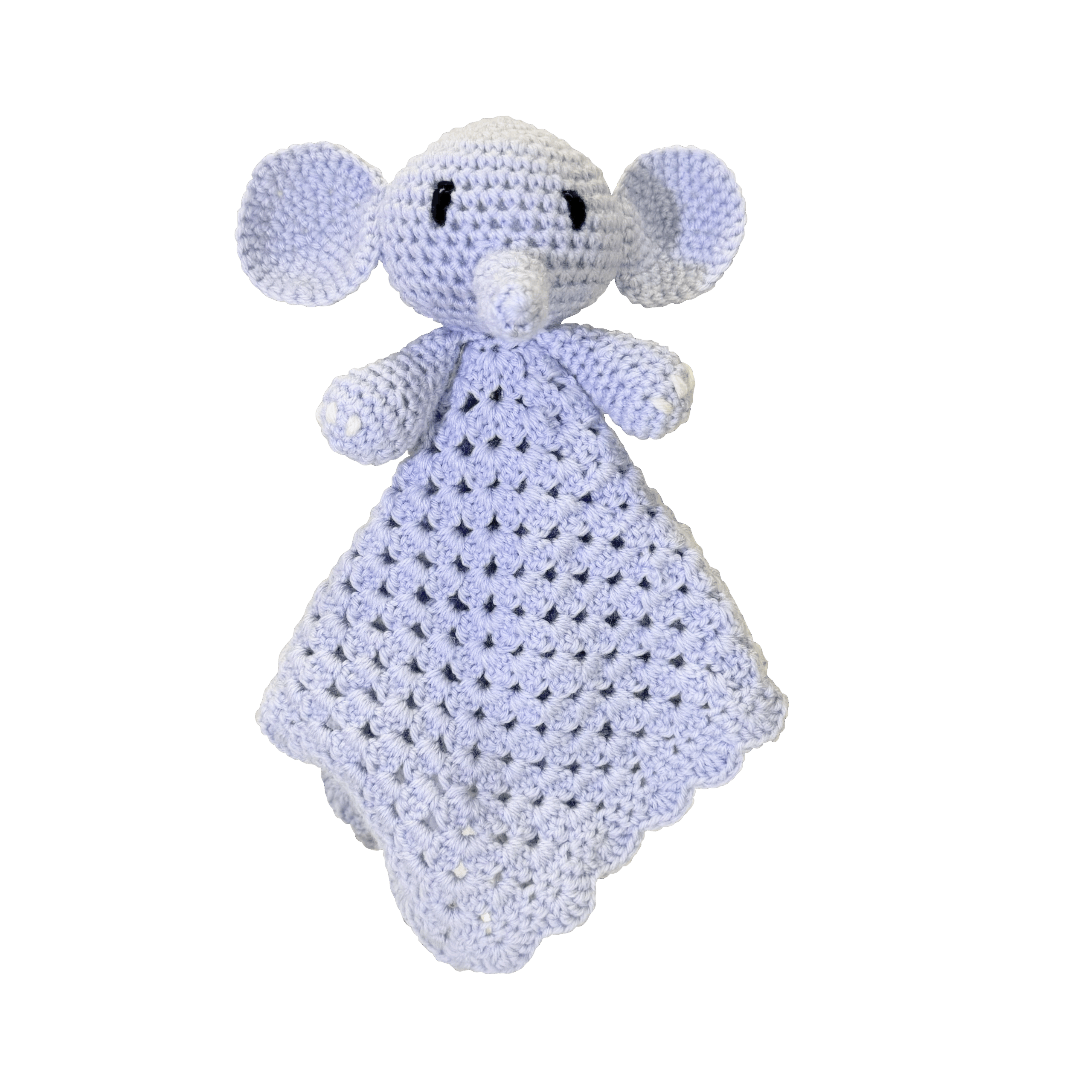 Ellie is made from wool yarn and stuffed with hypoallergenic polyfill. Her face is hand-embroidered with cotton embroidery thread.